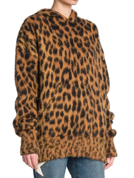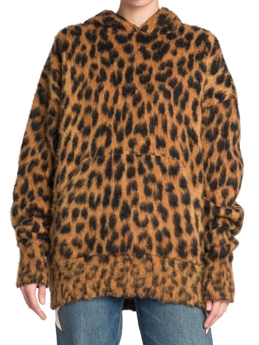 Cut in an oversized silhouette, Palm Angels’ pullover hoodie is crafted of a brushed alpaca and wool blend. A playful two-tone leopard print defines the style.