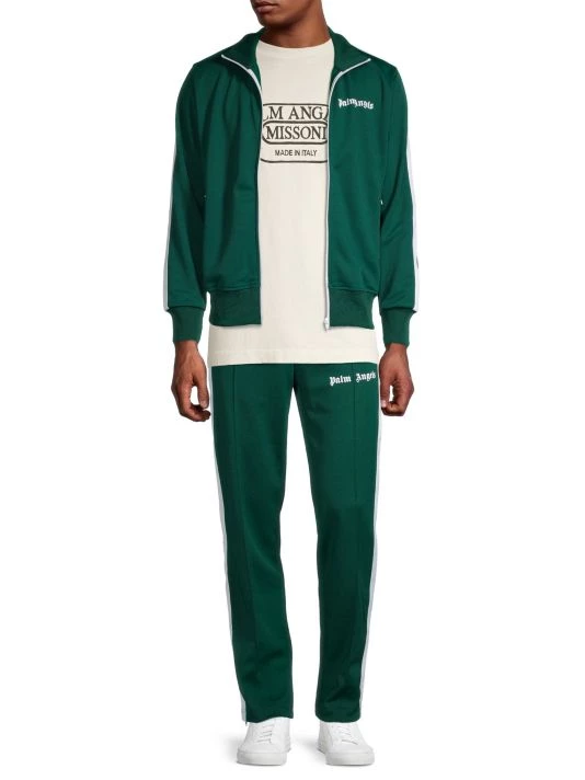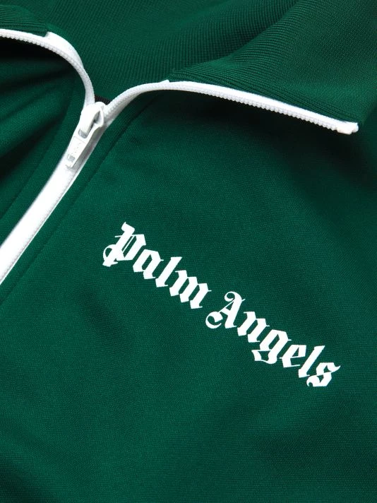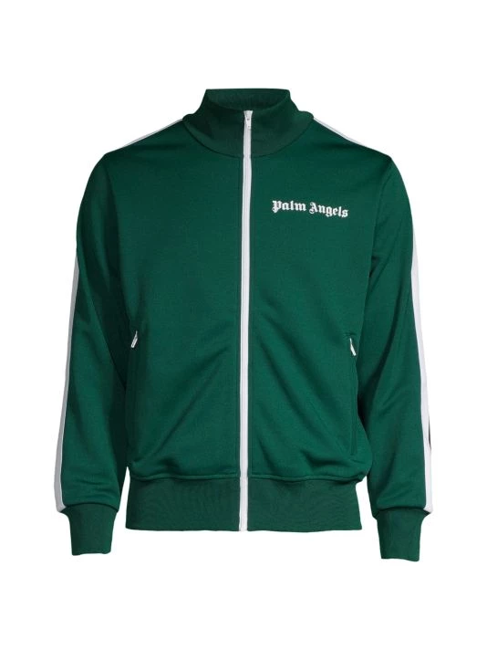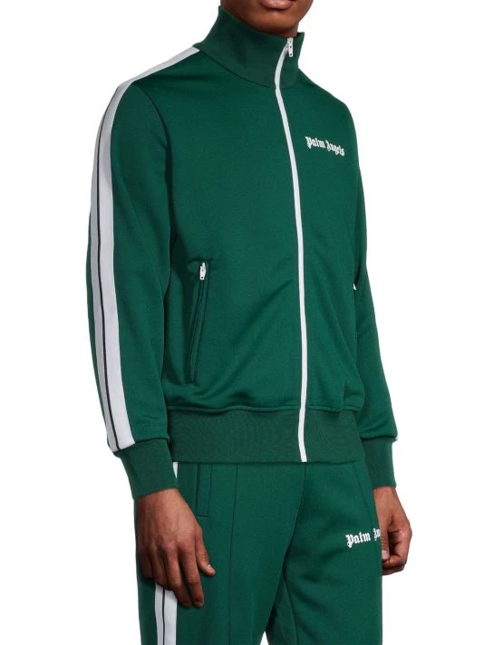 Crafted of polyester, the Palm Angels track jacket features a mockneck and fastens with a center zipper. Stripes accentuate both sleeves.