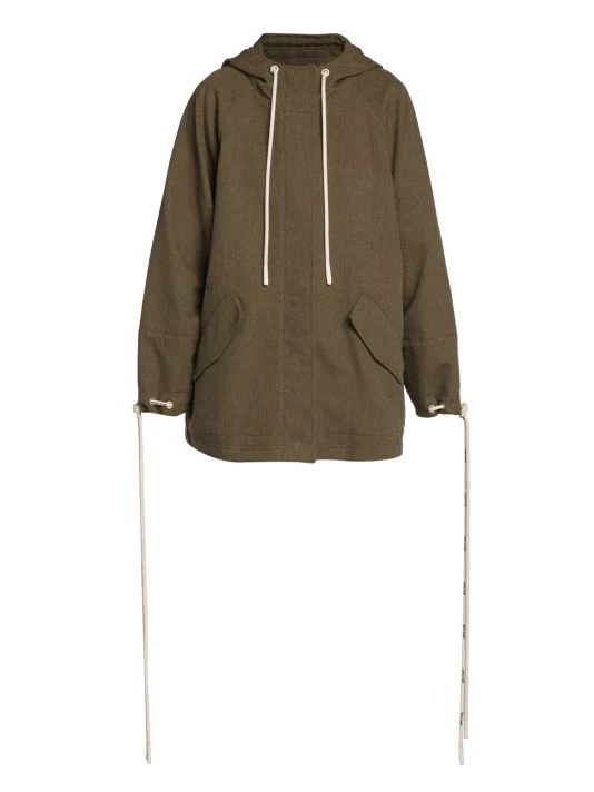 Made of a wool-blend, this parka is detailed with extra-long drawstring cords at the sleeves.