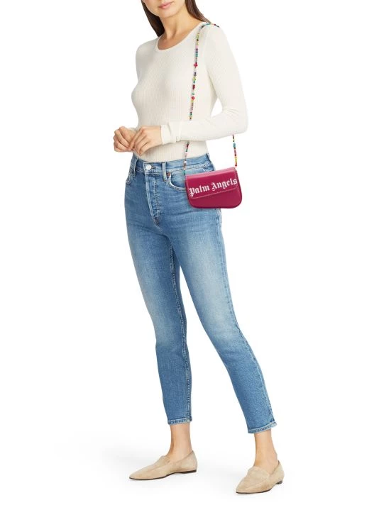 This leather shoulder bag boasts a beaded shoulder strap with a printed logo at the front flap.