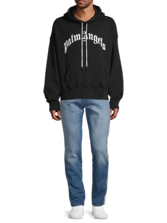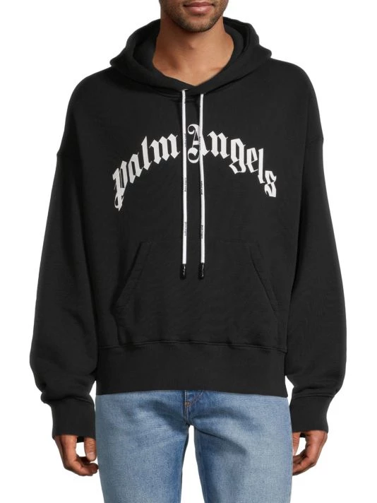 Crafted of cotton, this Palm Angels sweatshirt is styled with the brand’s logo on the chest. This garment is complete with a drawstring hood and a kangaroo pocket.