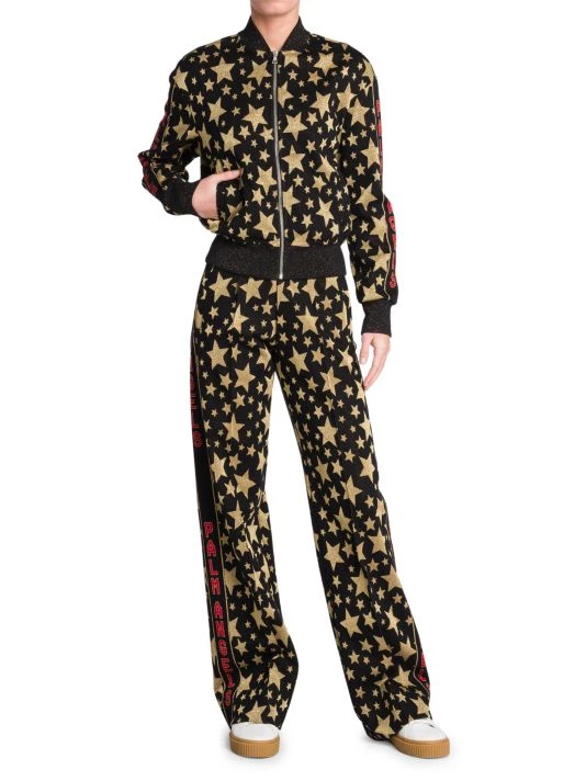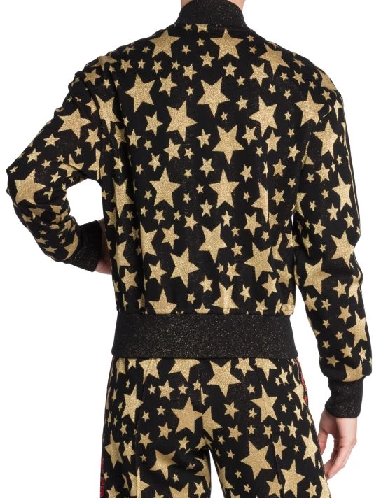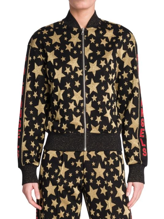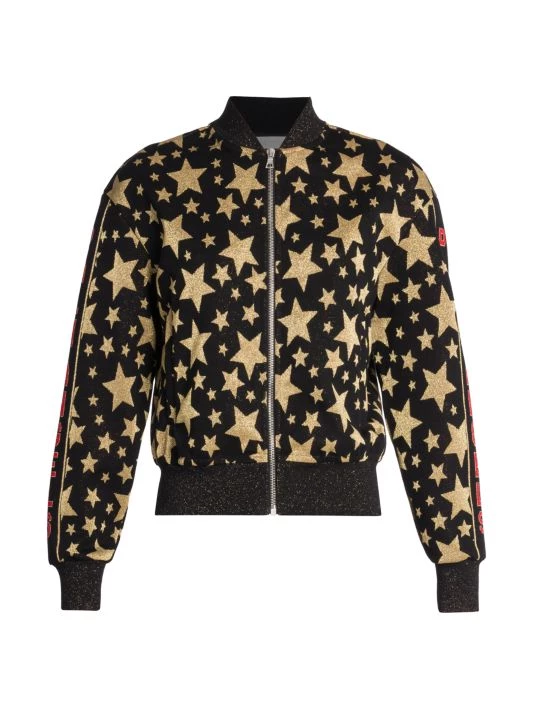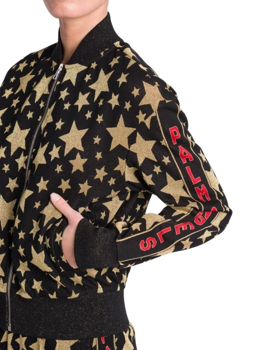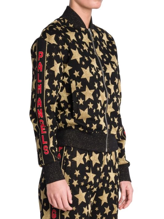Palm Angels’ track bomber jacket features contrast branding at the sleeves and a sparkly jacquard star pattern.