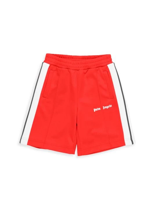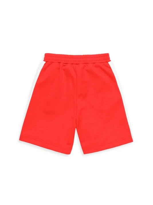 A logo detail and contrasting stripes at the sides accent these casual shorts.