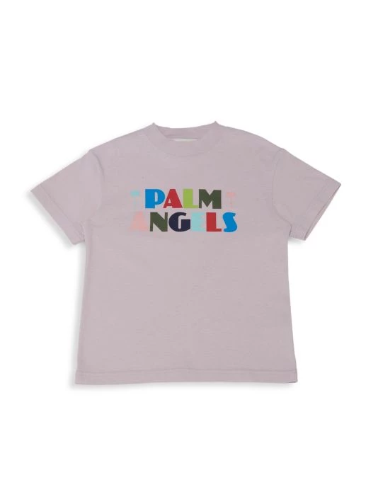 This t-shirt features a multi-colored brand logo design with palm tree accents.
