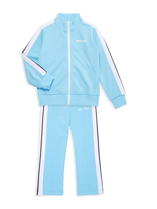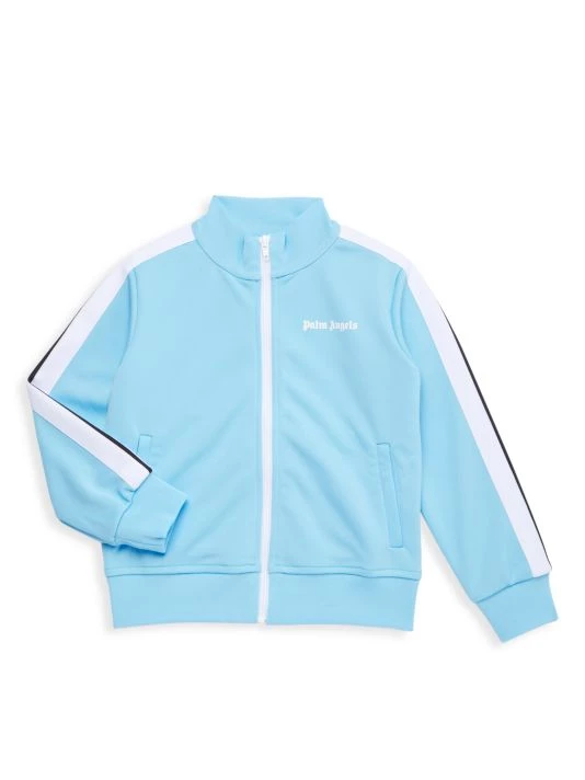 The brand’s signature track jacket features contrast stripes on the sleeves and the logo on the chest.