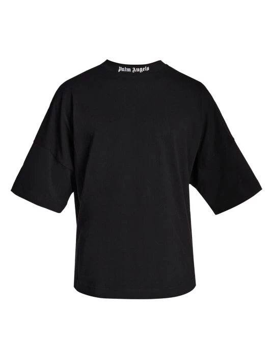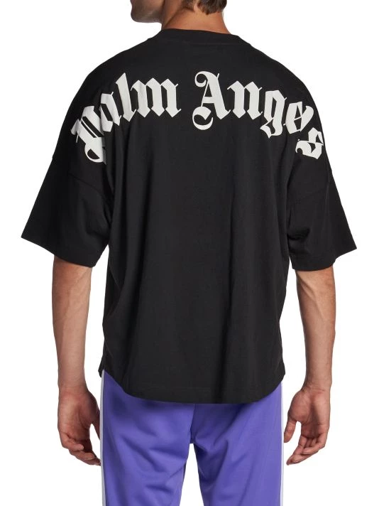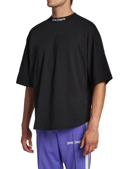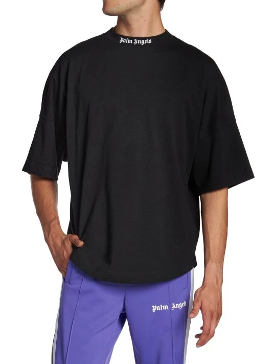 This oversized cotton T-shirt features a drop shoulder, round hem, and a contrast logo at the neck.