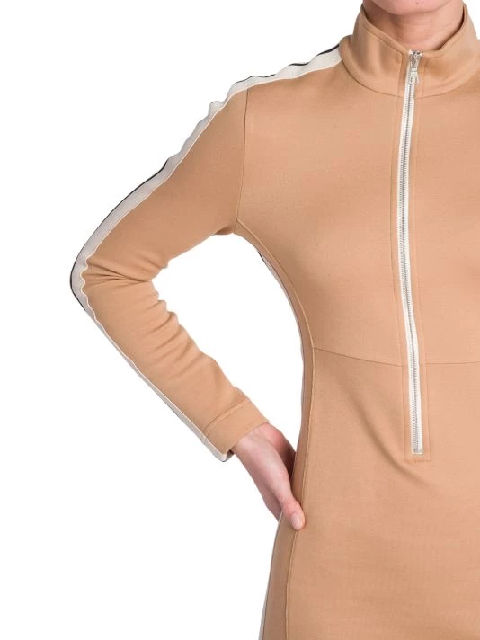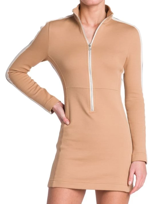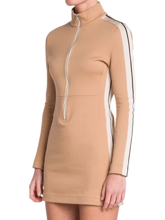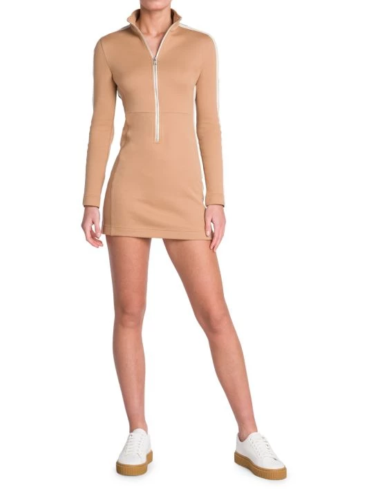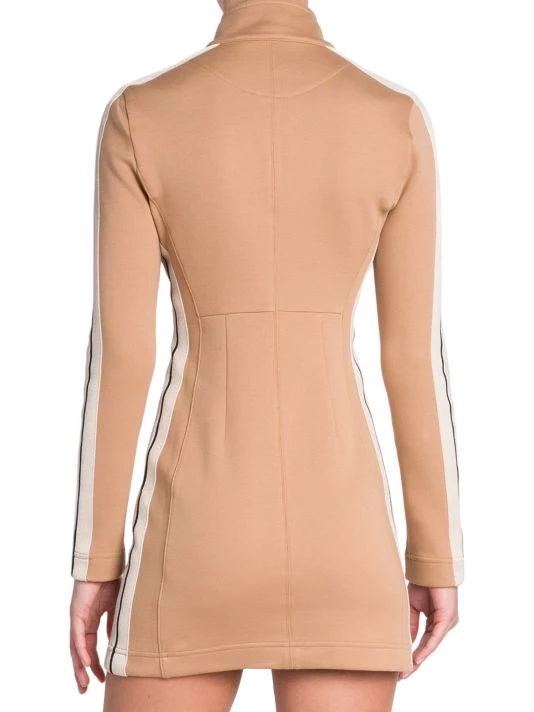 Cut in a body-con silhouette, Palm Angels’ minidress is complete with a quarter-zip front and textured piping at the back. Track-inspired stripes elevate this style’s sides and sleeves.