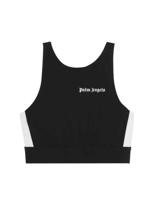 Palm Angels Training crop top features a scoopneck, striped sides, and a logo-printed front.